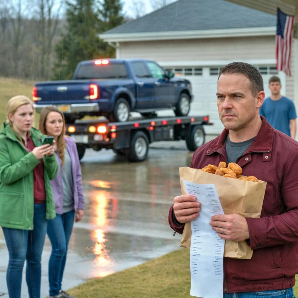 Headlights swept down the street. The tow truck rumbled to a stop in front of my house, chains clinking softly in the cold. The driver was a thick-set man in a beanie, breath puffing white as he climbed down.