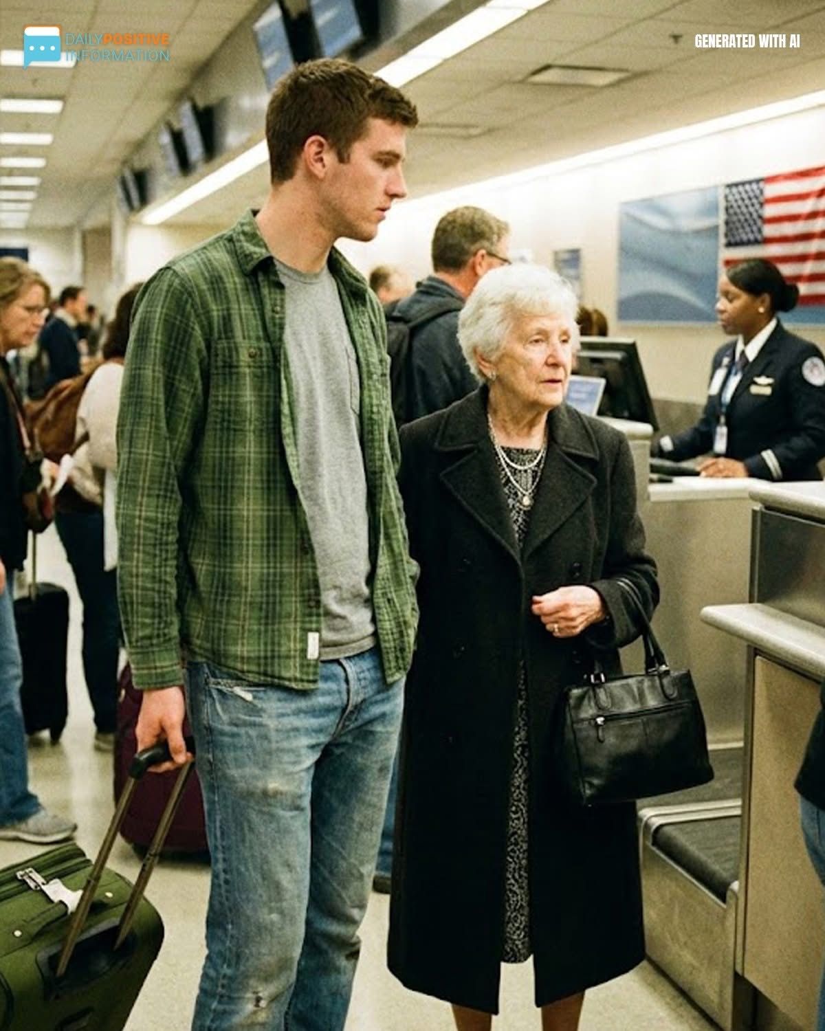 There we are—me and my grandmother, Hazel Draper, standing in the middle of Hartsfield-Jackson International Airport in Atlanta. Behind us, an American flag hangs from one of those massive steel beams, and you can see crowds of travelers rolling their suitcases past us in the background.