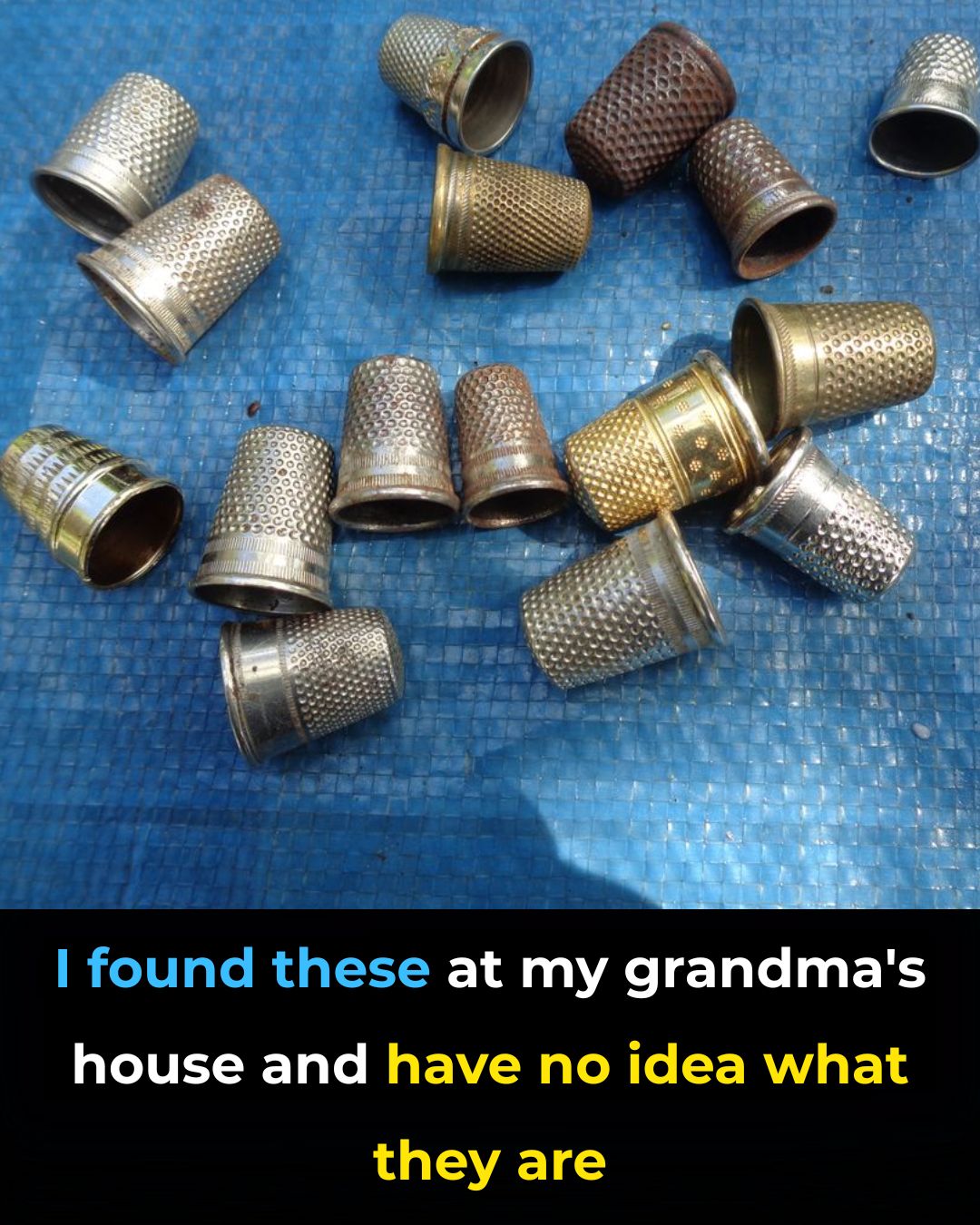 Thimbles are small items, usually made from metal or plastic, that are used in hand sewing. These tools are worn on the fingers (typically the middle finger or thumb) to protect the fingers from being pricked or poked by the needle while pushing it through fabric. Thimbles allow the user to exert force with their fingers, making it easier to push the needle, especially when working with thick or stiff fabrics.